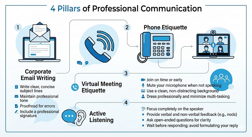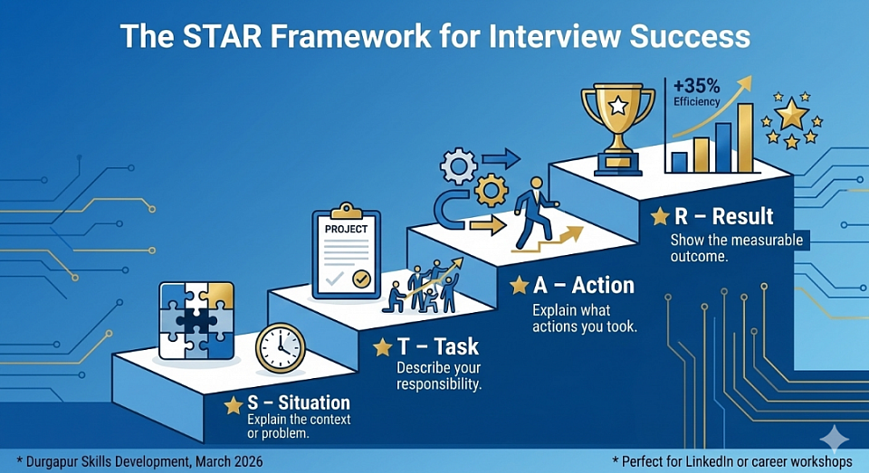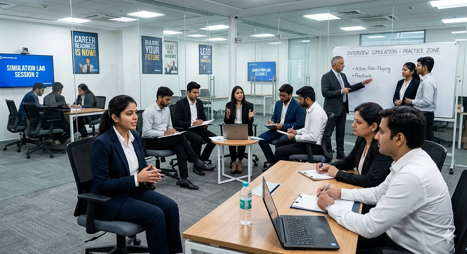 This page offers a comprehensive gallery showcasing the Skills Development center, capturing its dynamic and innovative online learning environment. Through a collection of both real-world photographs and detailed infographics, you can explore our modern digital facilities, including virtual simulation labs, remote boardrooms, and interactive training spaces designed for both online and hybrid learning sessions. The gallery also includes a range of curated infographics, providing valuable resources on essential professional skills such as Personal Branding, the STAR Framework for Interview Success, and the "4 Pillars of Professional Communication." Each image aims to illustrate our commitment to bridging the gap between academic education and corporate readiness through cutting-edge online training, empowering freshers with the mindset and tools needed for interview and workplace success.